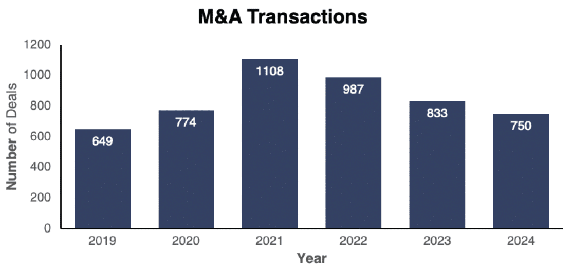 Annual U.S. Insurance M&A Transactions (2019–2024)